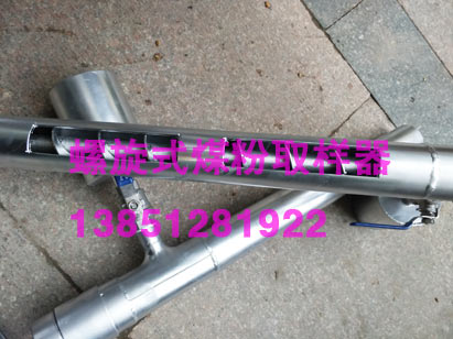 該螺旋式煤粉取樣器設(shè)計(jì)采用螺旋輸送原理,當(dāng)煤粉沉落在取樣嘴中,利用外部的手柄或電動(dòng)執(zhí)行機(jī)構(gòu)旋轉(zhuǎn)螺旋輸送裝置,煤粉將通過(guò)取樣管送到落粉管進(jìn)入取樣瓶中。
