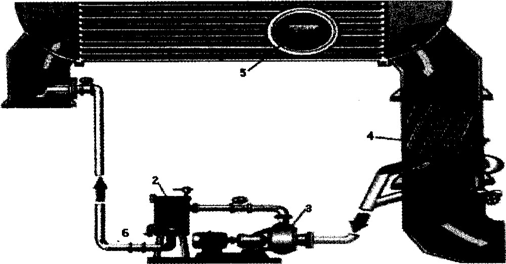 達拉特發電廠330MW三號汽輪機組的凝汽器膠球清洗裝置由裝球室、膠球輸送泵和收球網等幾大部件組成。膠球系統設備如圖1。凝汽器入口;2、裝球室;3、膠球循環泵;4、收球網;5、海綿膠球;6、膠球系統設備