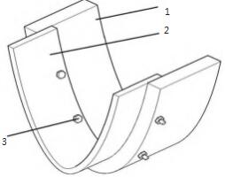 故經(jīng)過題攻關(guān),發(fā)明了收球網(wǎng)與循環(huán)水管道間的一種新型密封結(jié)構(gòu),如圖6所示。圖6中1號(hào)部件為剛性材料、2號(hào)部件為柔性材料,其通過部件3(螺栓)緊固;鋼板和聚四氟乙烯材料的復(fù)合固定,既保證密封的強(qiáng)度、又保證密封的柔韌性,防止收球網(wǎng)在轉(zhuǎn)動(dòng)過程中的卡澀。