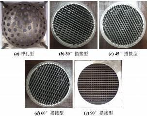 參照某電廠凝汽器循環水系統建立了原比例物理模型其中包括冷卻水管道部分、二次濾網部分、凝汽器、循環冷卻水進出口水室、回水室及換熱管部分而二次濾網部分包含傳統沖孔型二次濾網及開孔率相同但網條搭接角度不同的4種二次濾網計算用物理模型及網格劃分如圖1所示其中濾網部分的網條及其不同角度的搭接方式如圖2所示