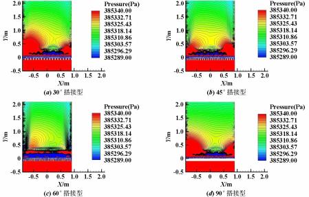 圖4為安裝不同搭接角度二次濾網時循環水管道中心截面處壓力分布云圖從圖4可以看出不同搭接角度的濾網對濾網后水流壓力場的分布影響不同且壁面附近壓